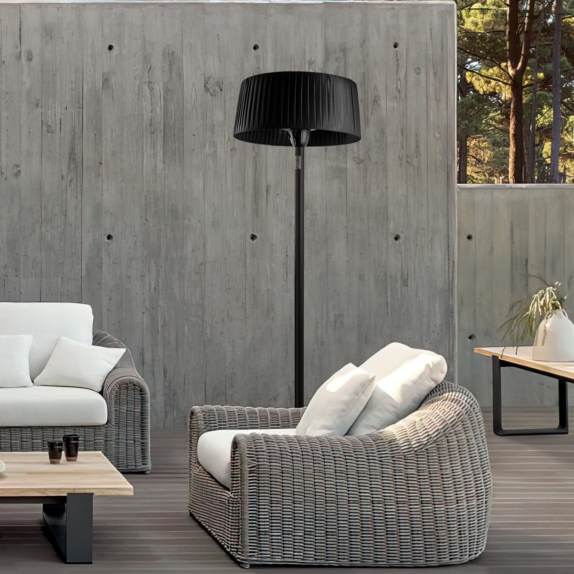 This sleek floor lamp provides steady, comfortable heating and ambient light without the need for an open flame or any complicated set up, making it ideal for creating a warm and toasty environment both indoors and out.