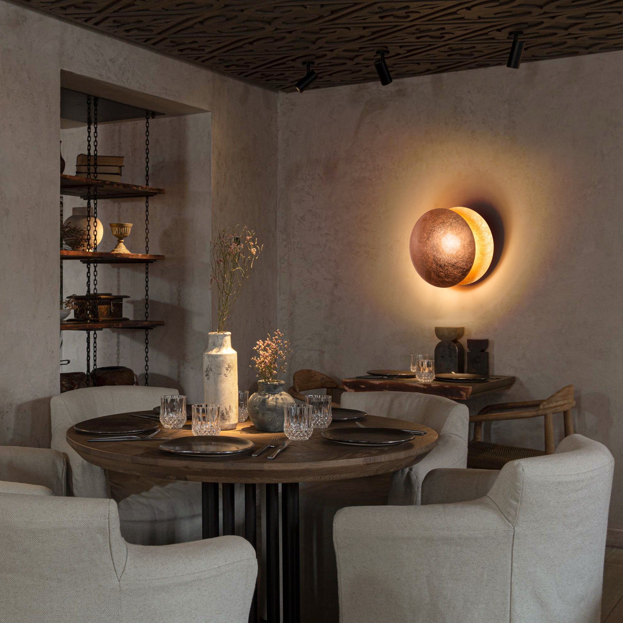 This unique lamp features a rotating metal cover on its surface, expertly designed to mimic the waxing and waning phases of the moon, creating a mesmerizing lunar ambiance in any room. Not only does it provide a stunning visual experience, but it also offers adjustable brightness settings, allowing you to customize the lighting to suit your mood and needs. Elevate your home decor with the Moonlight Wall Lamp and bask in the gentle glow of the moon whenever you desire.