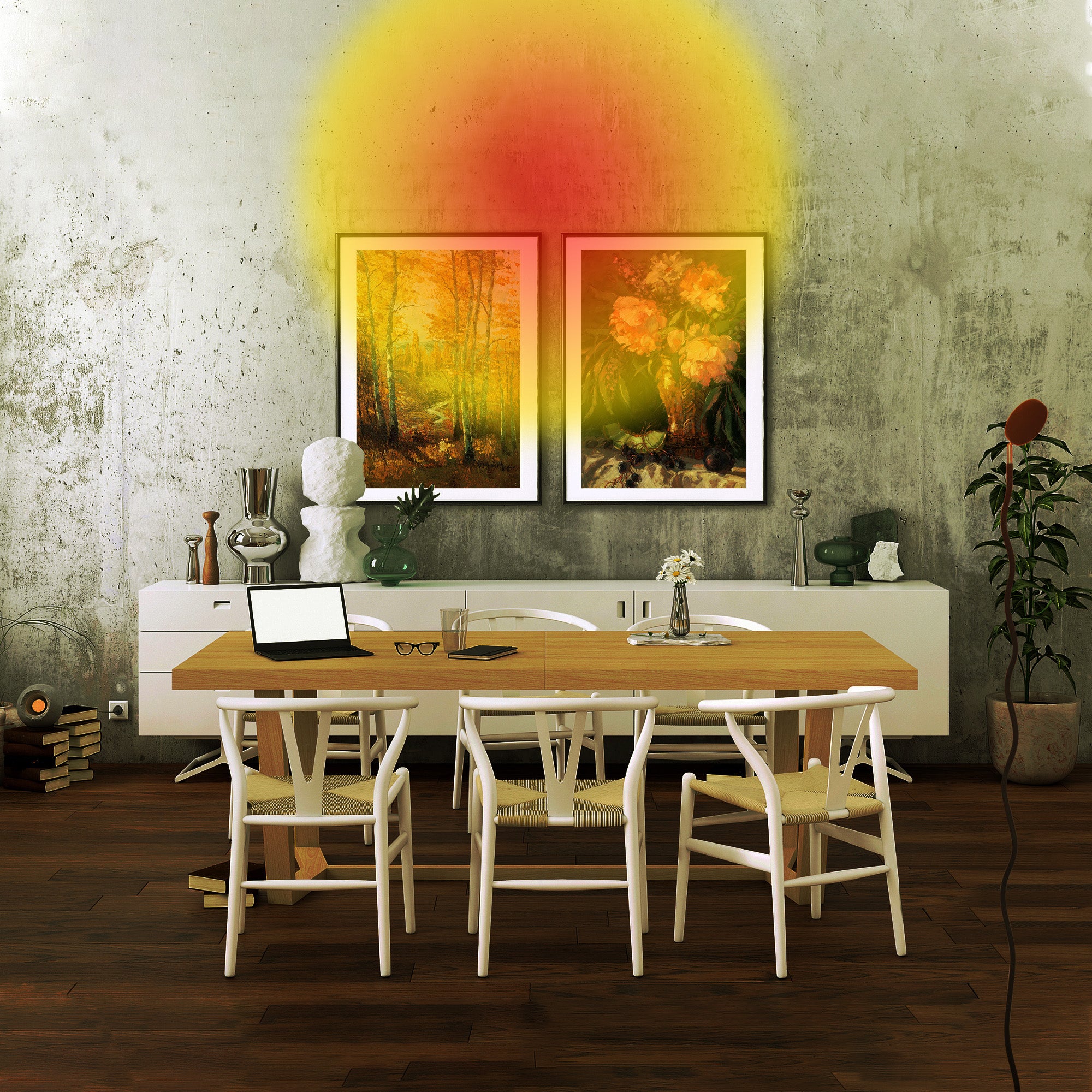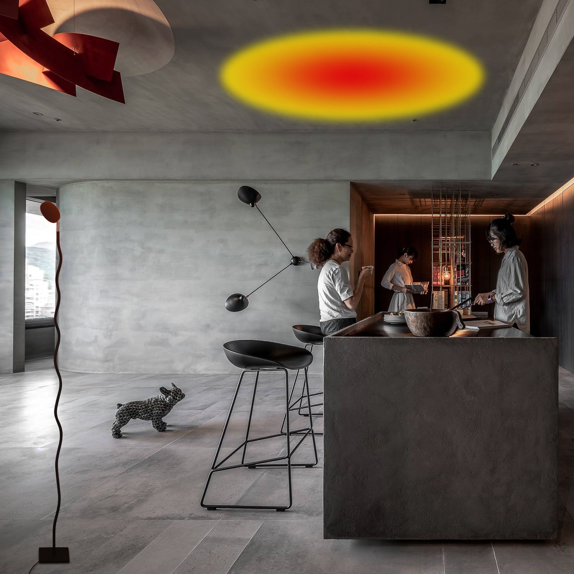 The idea is to create a compact and minimal object with a great installation effect, which can bring into homes new metaphysical galaxies of colors in which to immerse oneself. It allows you to create new graphic patterns and extend the possible projection surface, the ceiling and walls become immense paintings where artwork is displayed. It's a powerful tool to create endless composition and decor gently the environment with its presence.