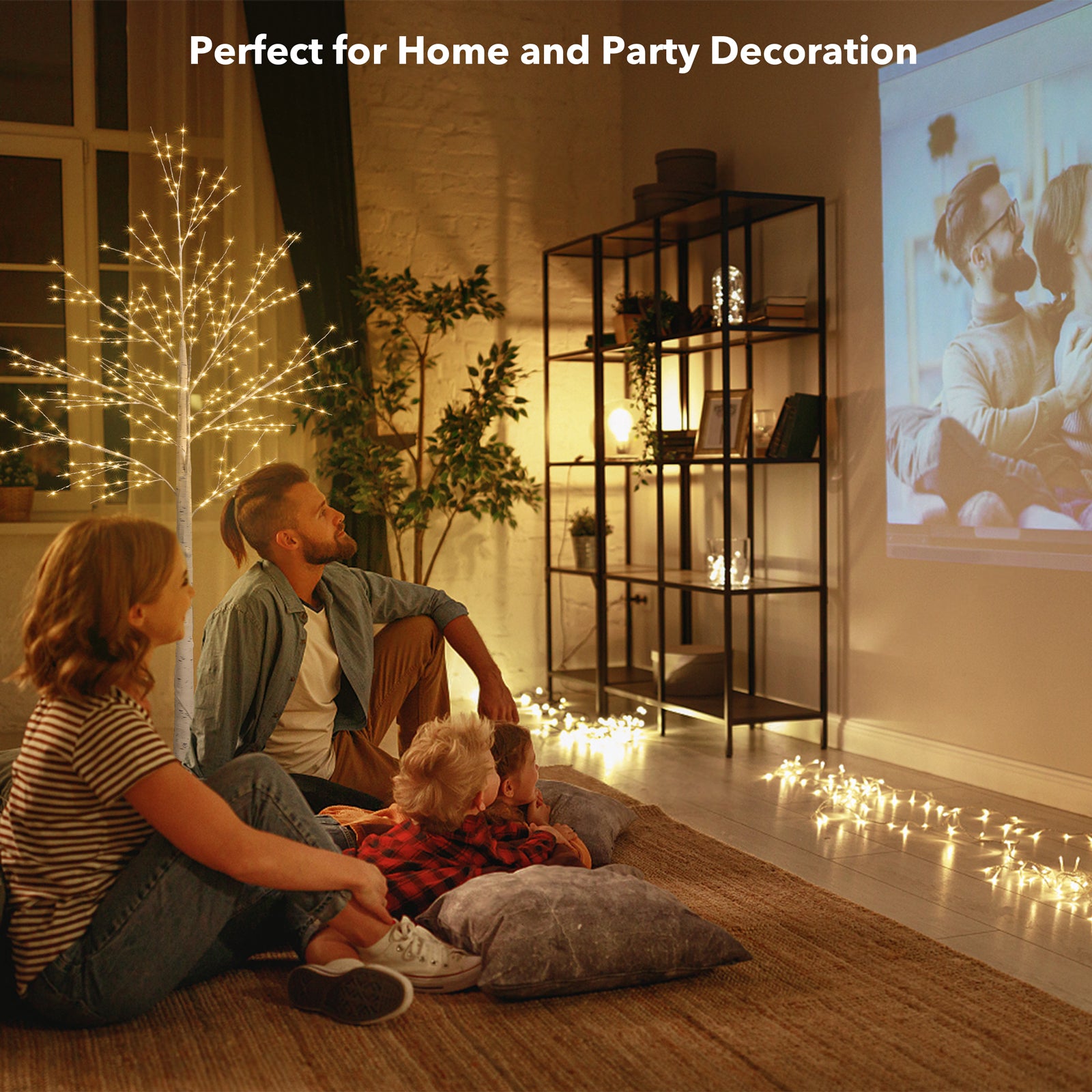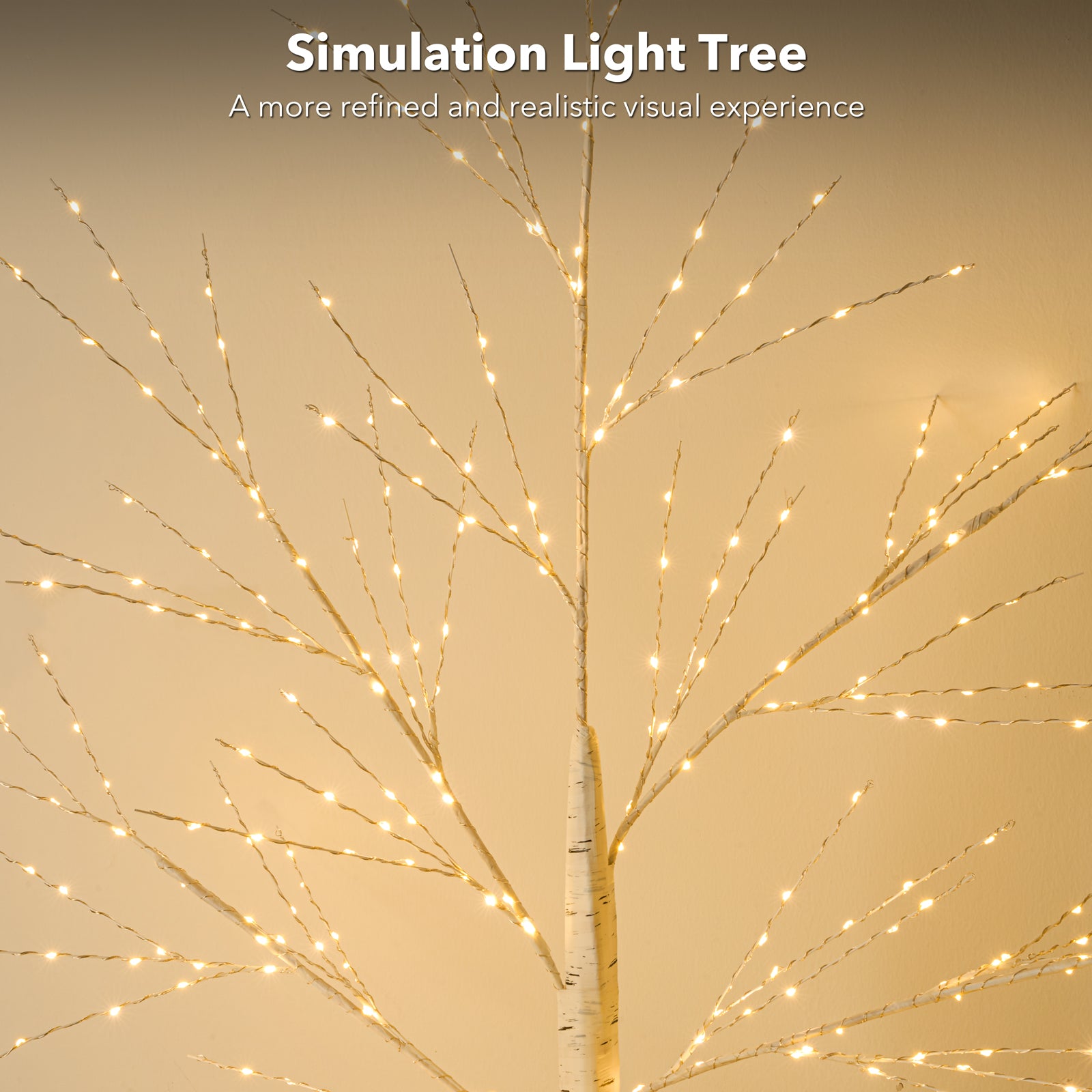 1.Stunning Decor: Features a realistic birch tree design with 440 warm white LED lights, perfect for adding a festive touch to your home during Christmas, Halloween, or any special occasion.