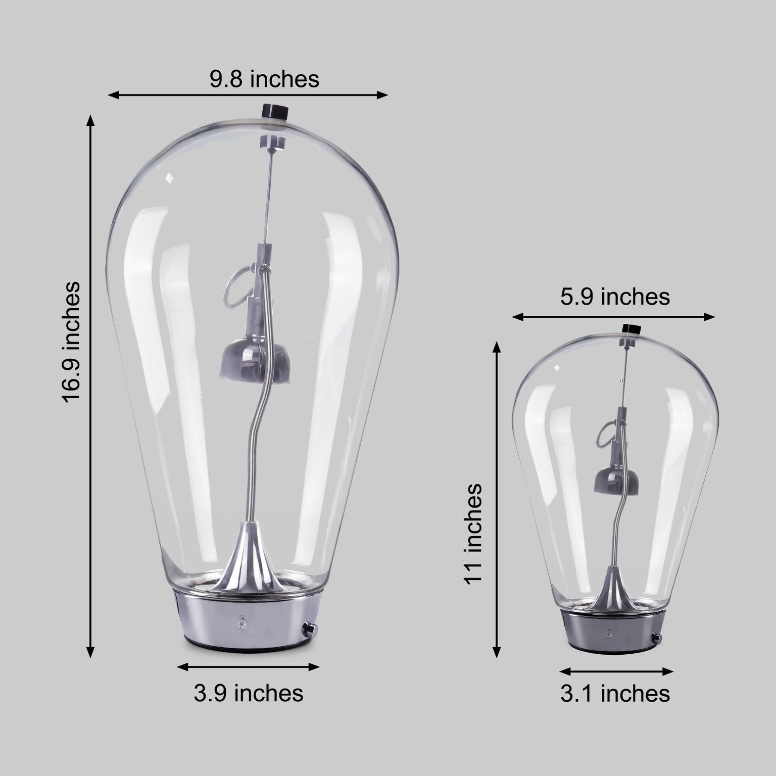 An exquisite spotlight encased in an oversized light bulb will elevate your tabletop decor to the next level. The lamp designed with a sleek and modern style that perfectly blends a clear glass and nickel-plated metal geometric shape with a circular base, slim shaft, and spherical shade. Not only does this lamp offer a sophisticated look, but it also provides versatile functionality.The magnetic feature on the glass lampshade enables you to adjust the direction of the light, providing customizable illumination that suits your specific needs.